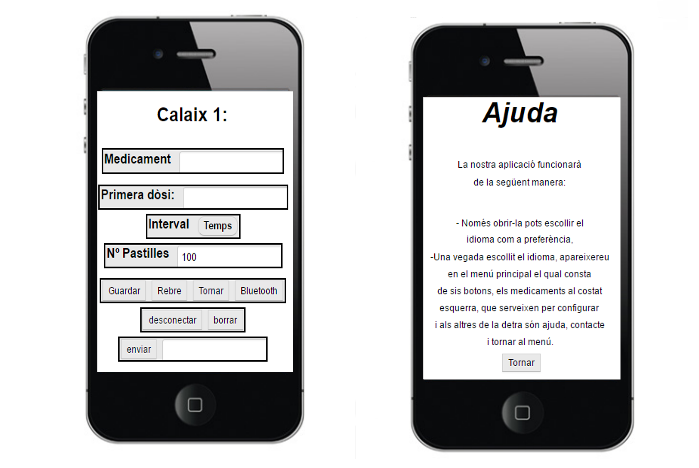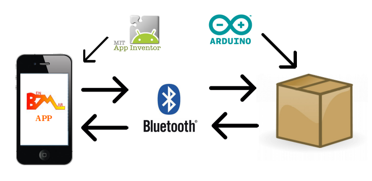 The project tries to make an application that connects with a box (a pill dispenser for the elderly) via Bluetooth and indicated that the older person is taking or tablets. This would be the scheme works: