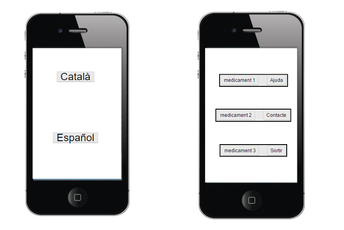 - Then we have the menu (where we can fill out the information about the medicines, see our contacts and ask for help).